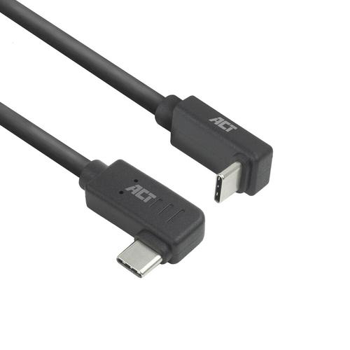 ACT USB 3.0 10Gbps 60W USB Type-C (haaks links/rechts) naar USB Type-C (haaks boven/beneden) kabel, 0,5 meter. Snoerlengte: 0,5 m. Aansluiting 1: USB C, Aansluiting 2: USB C, USB-versie: USB 3.2 Gen 2 (3.1 Gen 2), Max. overdrachtssnelheid: 10 Gbit/s, Kleur van het product: Zwart