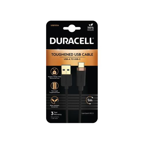 Duracell USB7031A. Kleur van het product: Zwart. Breedte: 5 mm, Diepte: 1000 mm, Hoogte: 5 mm. Breedte verpakking: 105 mm, Diepte verpakking: 209 mm, Hoogte verpakking: 29 mm